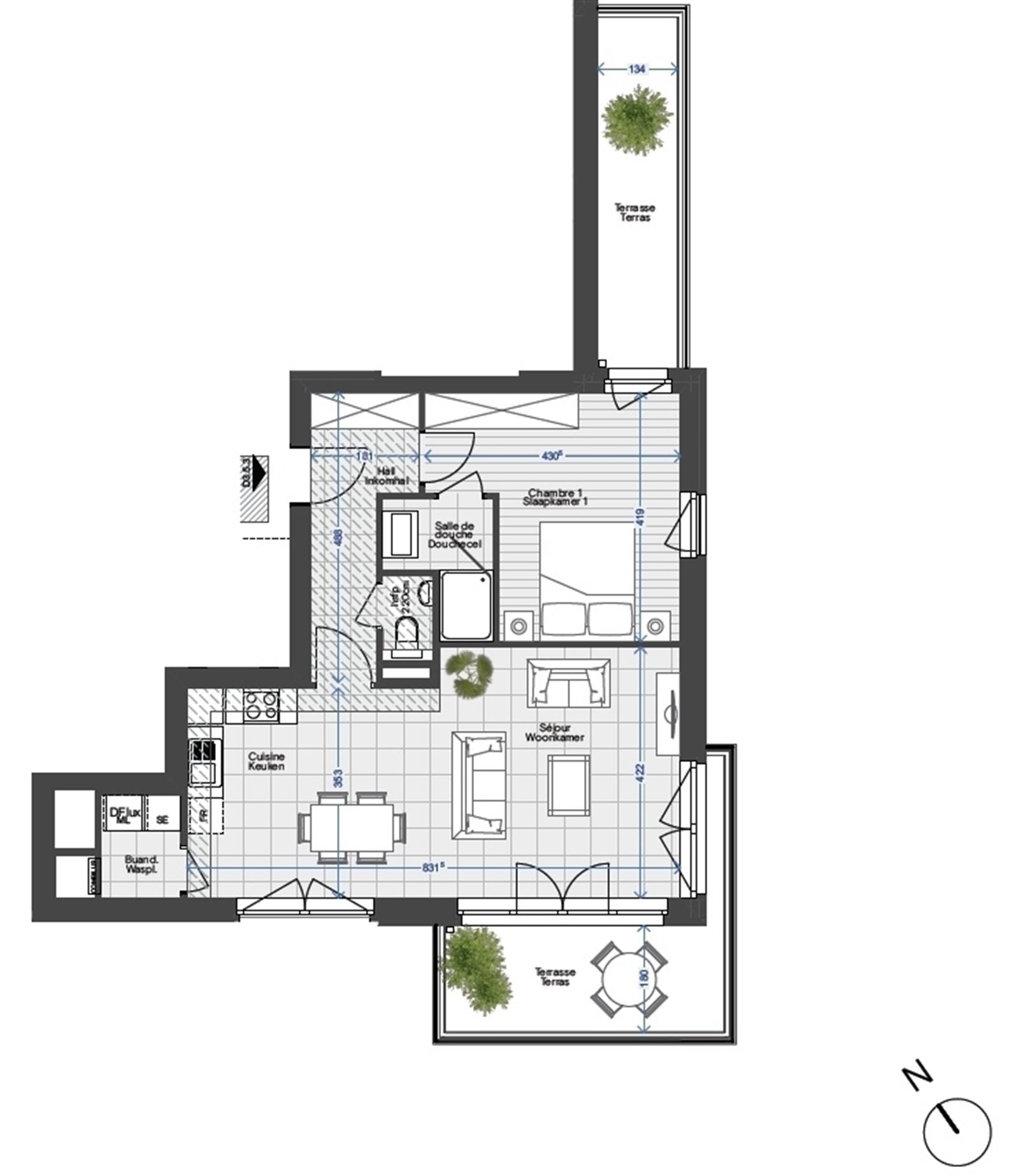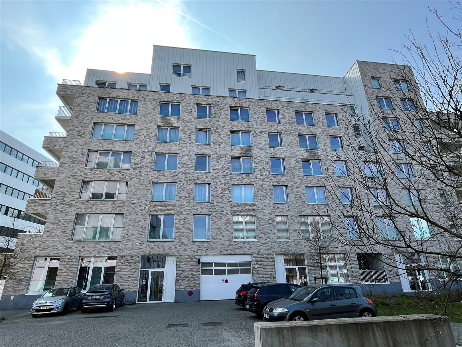 Rue du Nieuwmolen, dans le nouveau complexe City Dox, appartement une chambre au 5ième étage offrant une superficie extra-muros de +- 77,29 m² et deux terrasses d'une superficie totale de +- 21,08 m².