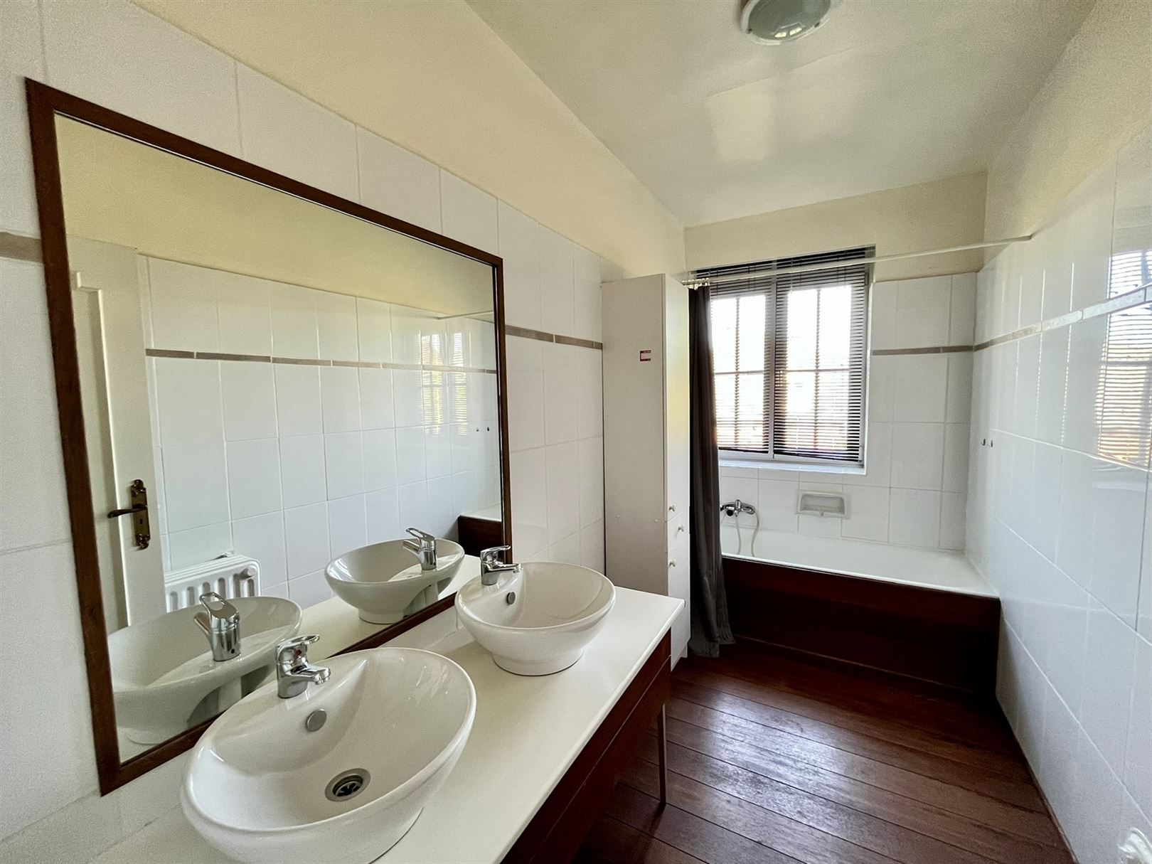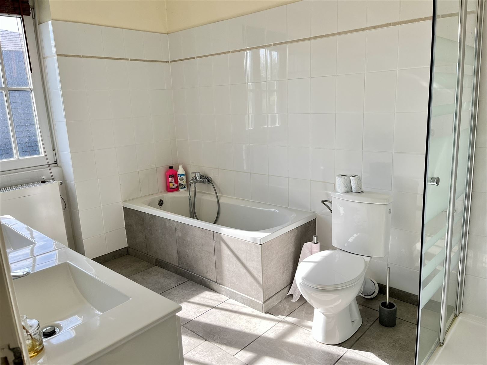 1er étage : hall de nuit, wc séparé, une première chambre de +- 21 m² avec sa salle de bains privative (baignoire, lavabo et wc), une salle de bains de +- 6 m² (baignoire et double lavabo), une seconde chambre de +- 21,30 m², une troisième chambre de +- 12,60 m², une quatrième chambre de +- 12,25 m², une chambre de +- 21,30 m² avec une salle de bains privative (double lavabo, wc, douche et baignoire et une 6ième chambre de +- 21 m² avec une salle de douche. Placards intégrés dans chacune des chambres.