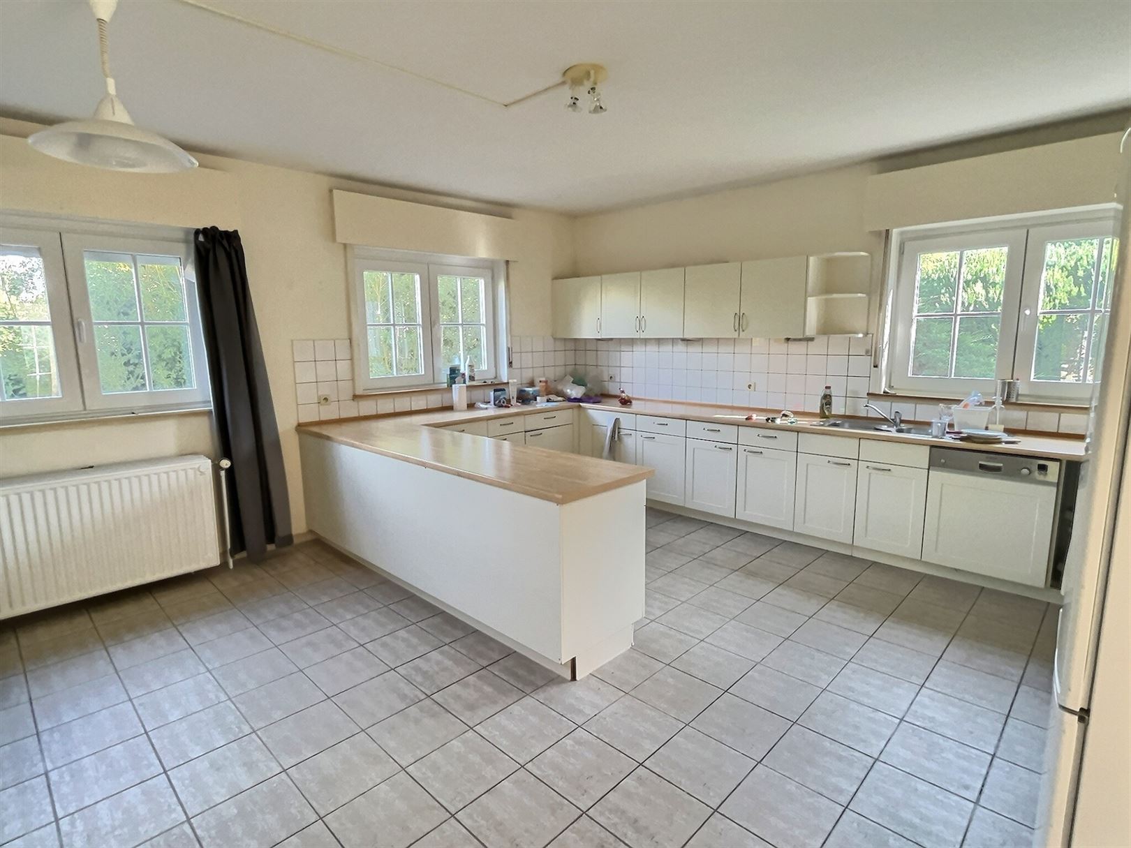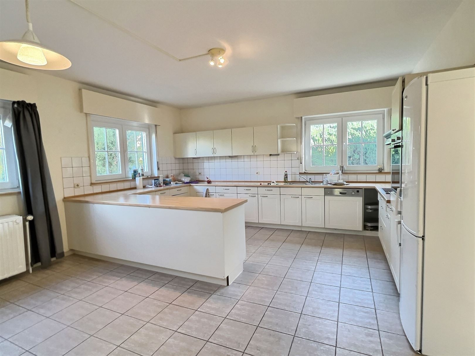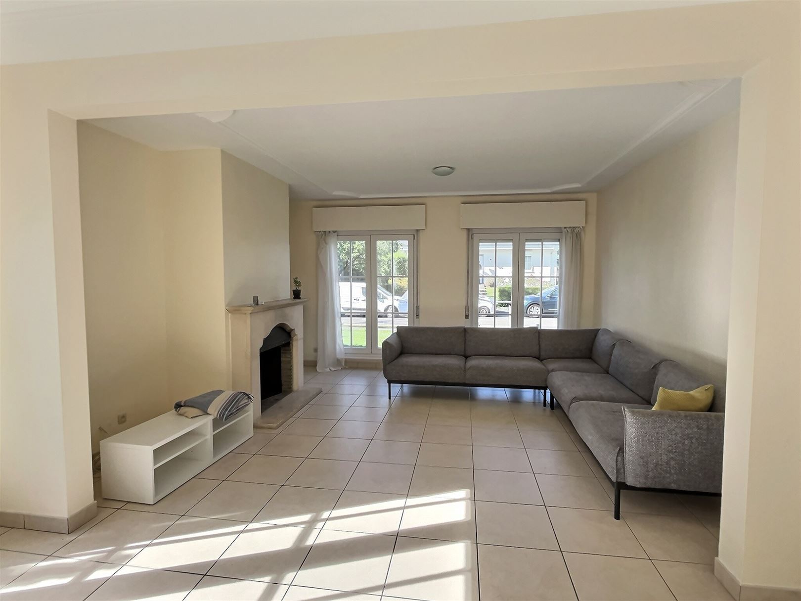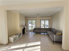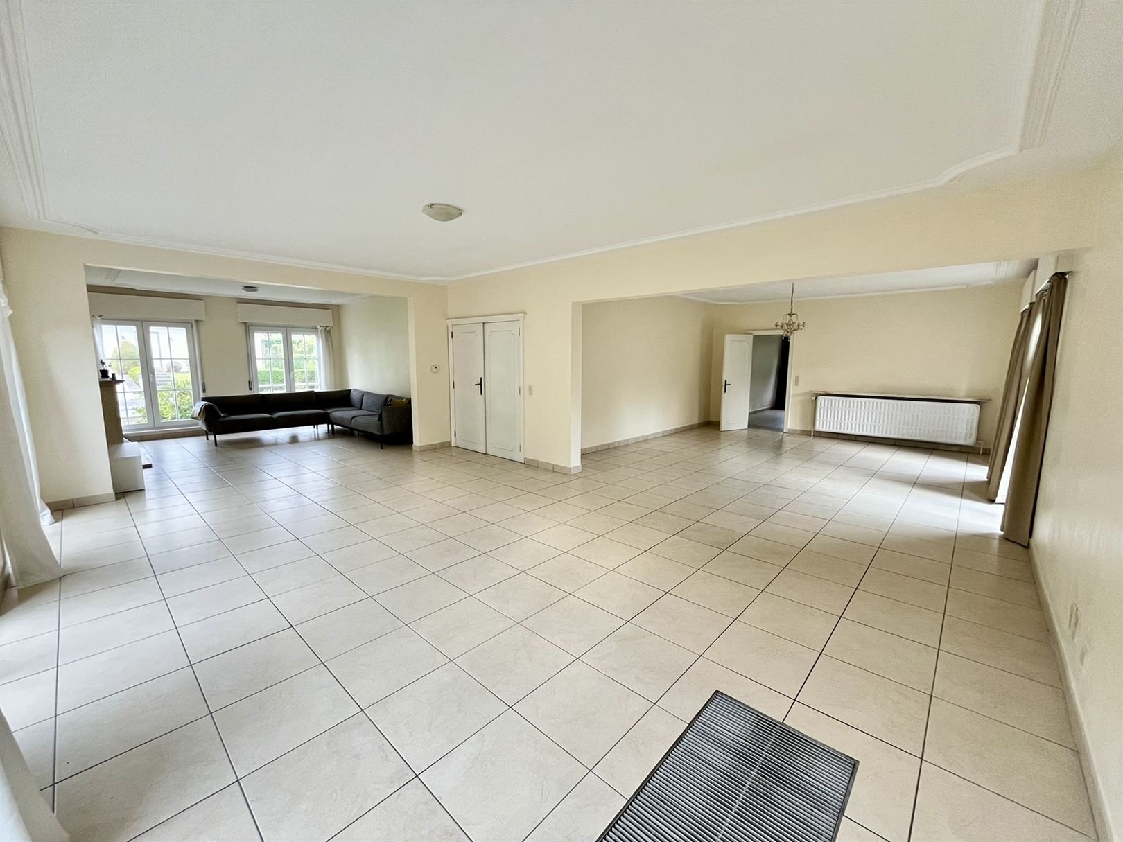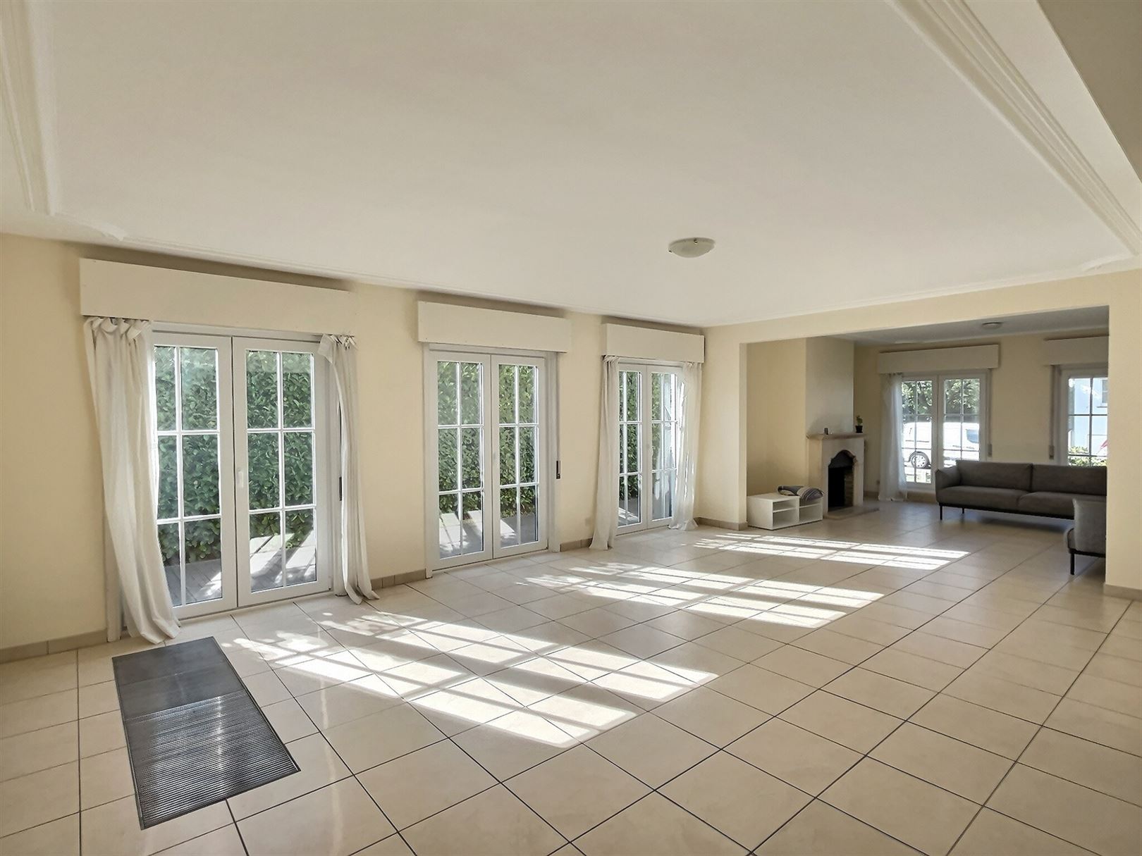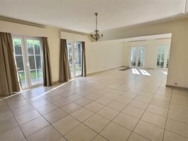 La villa se compose au rez-de-chaussée d'un grand hall d'entrée, vestiaire et wc séparé, un bureau à l'avant de +- 21 m², une vaste pièce de séjour carrelée de +- 70 m², une cuisine équipée de +- 24, et une entrée de service.
