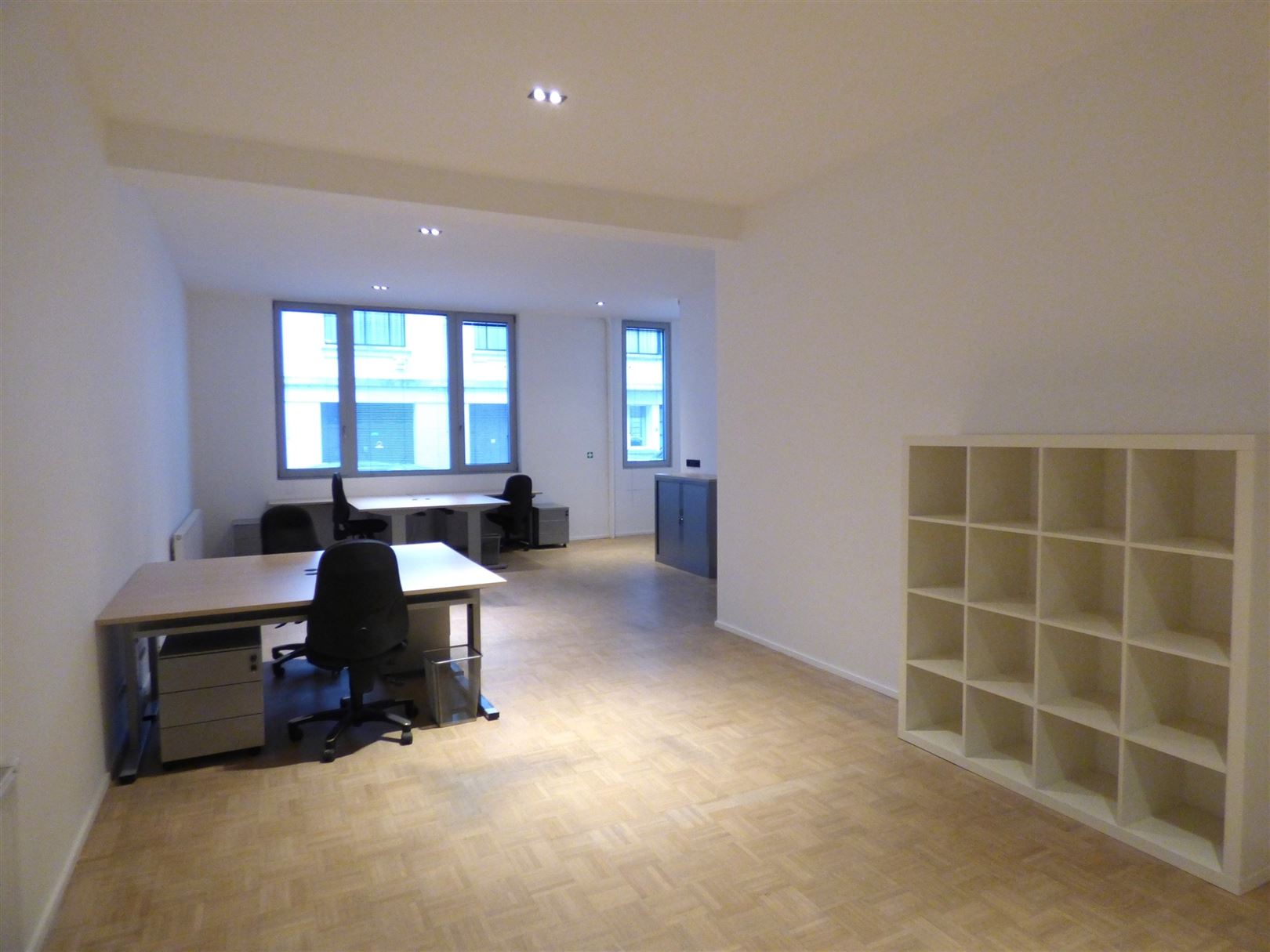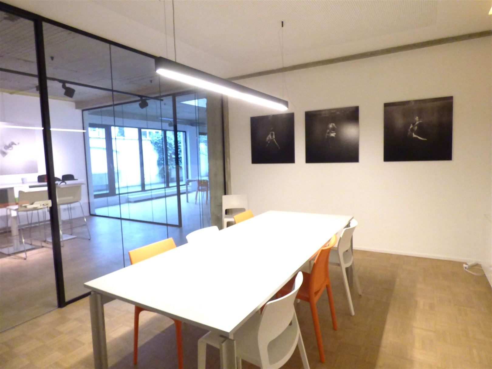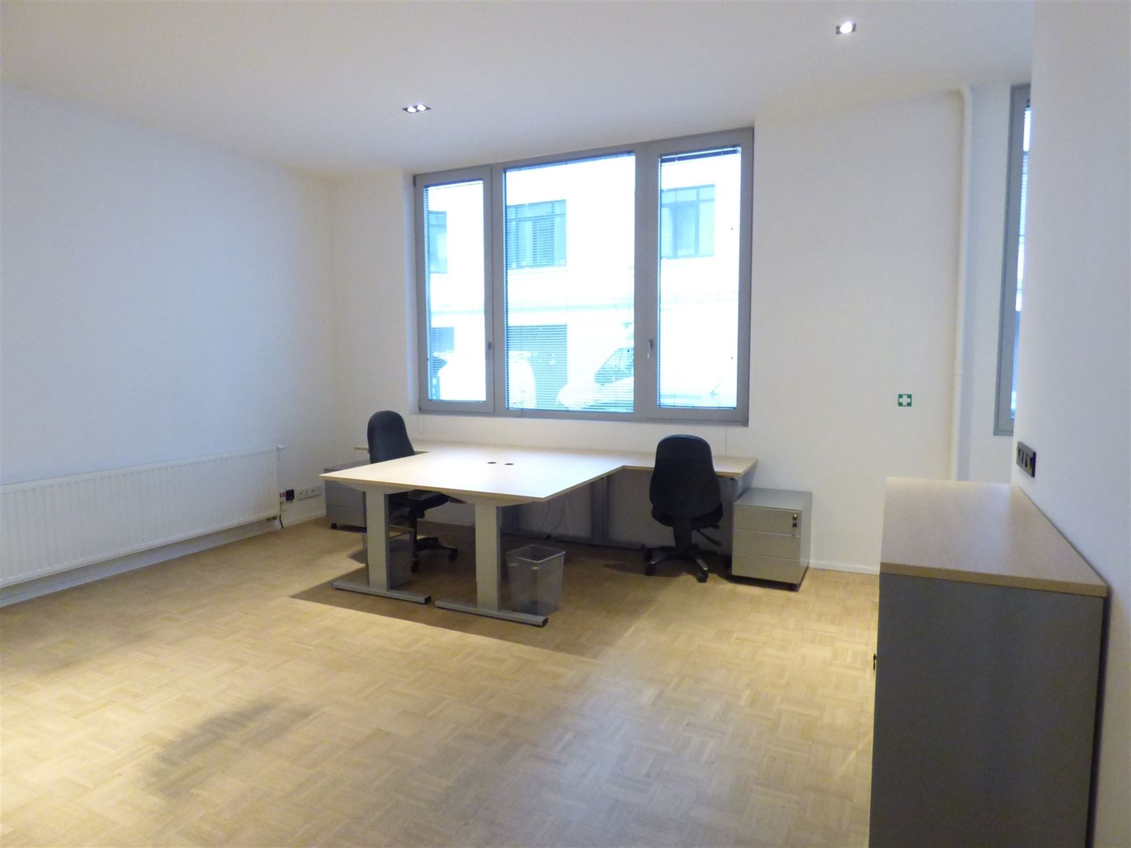 De huur bestaat uit een privékantoor van +- 65 m², een vergaderruimte van +- 20 m² en een keuken van +- 25 m² die gedeeld wordt met een ander bedrijf. Het kantoor is gedeeltelijk gemeubileerd (bureaus, stoelen en kasten).