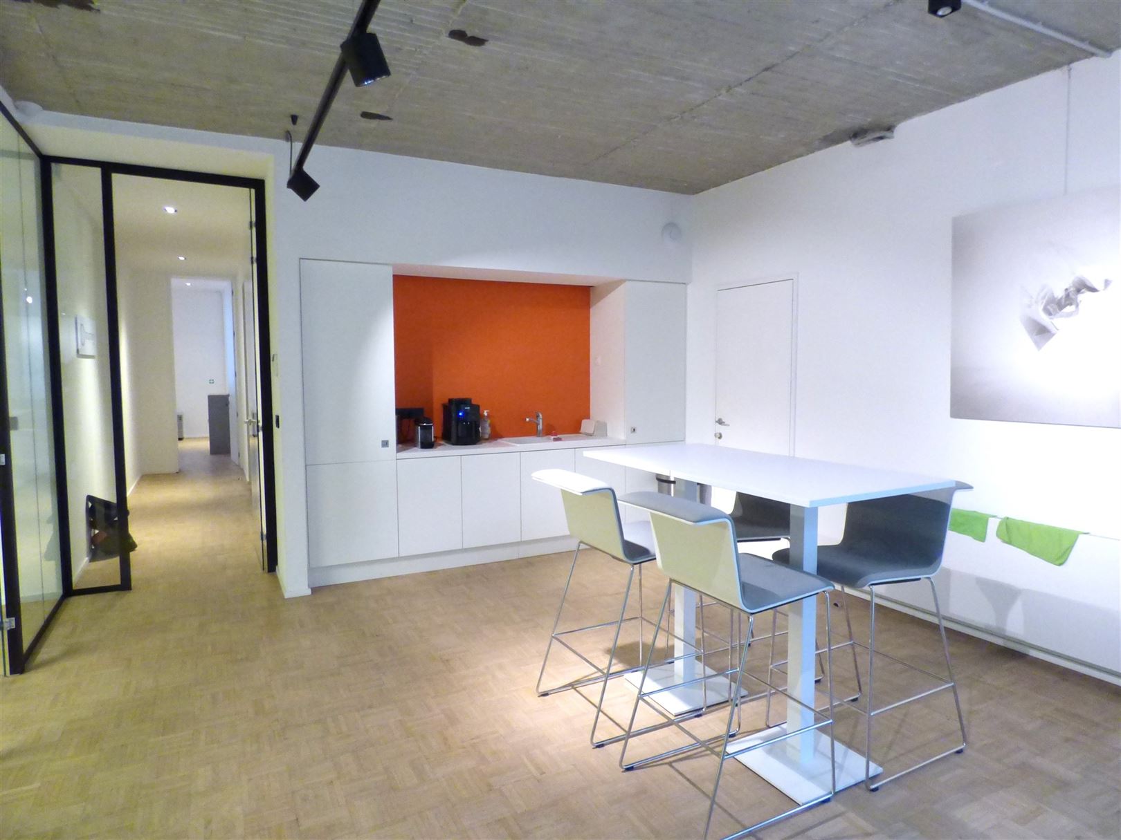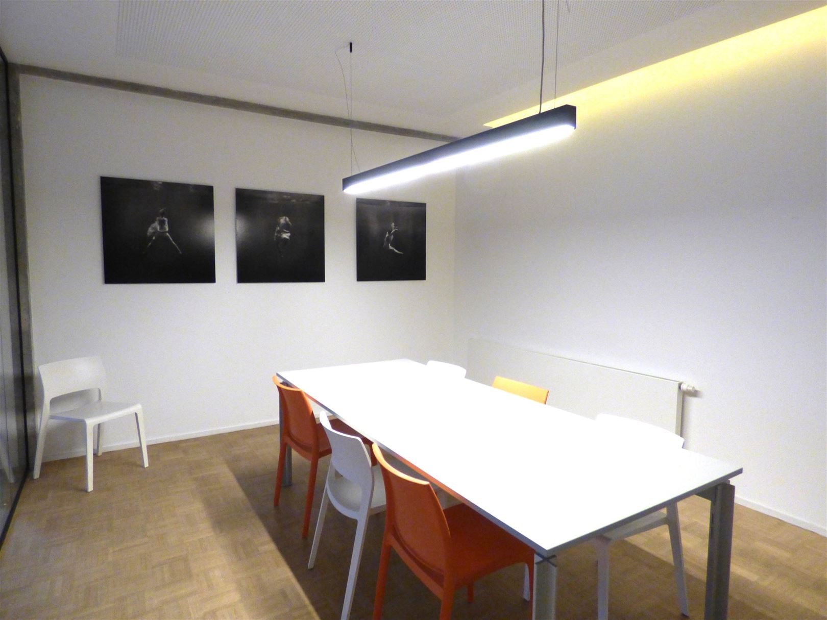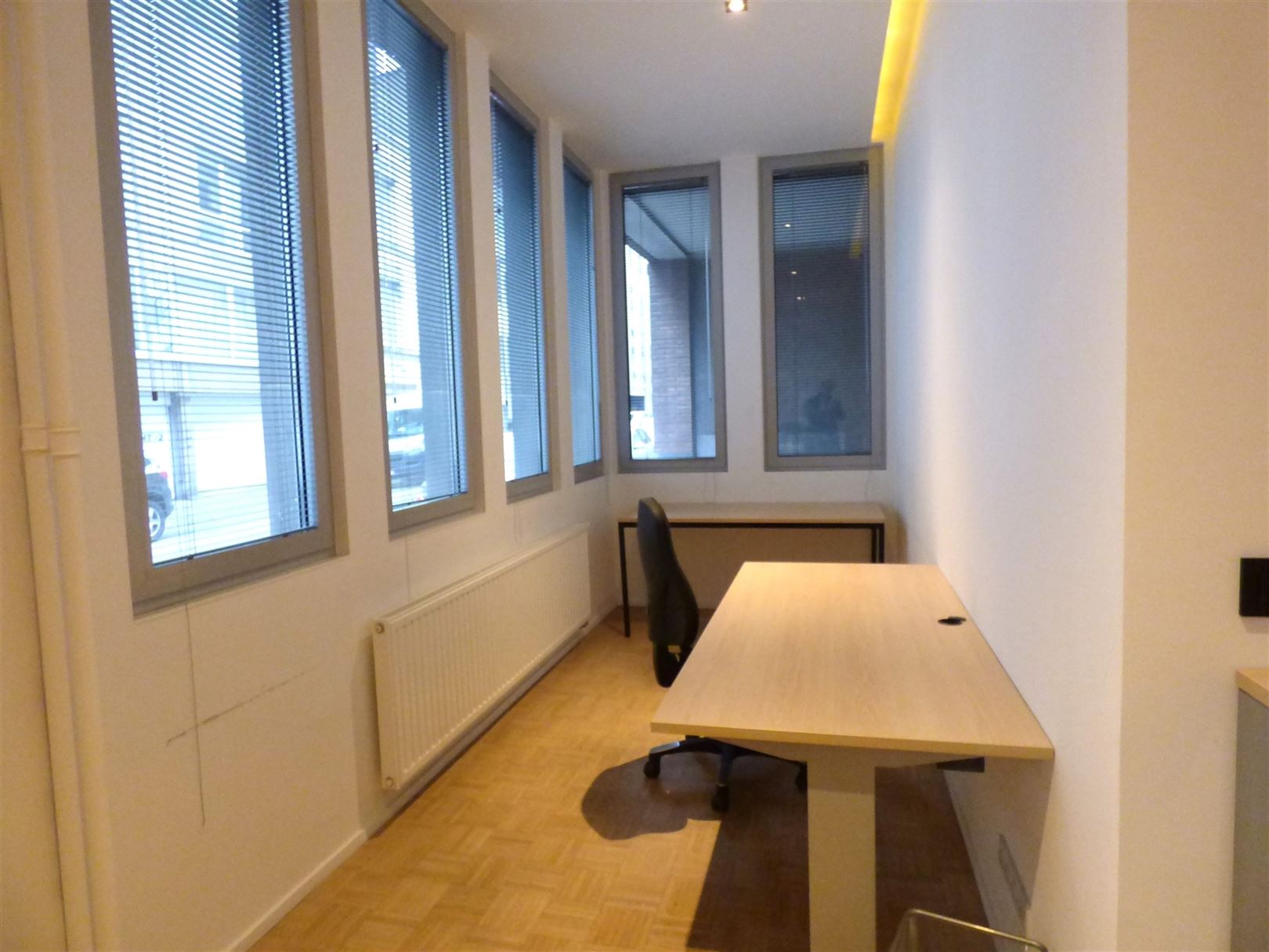 De huur bestaat uit een privékantoor van +- 65 m², een vergaderruimte van +- 20 m² en een keuken van +- 25 m² die gedeeld wordt met een ander bedrijf. Het kantoor is gedeeltelijk gemeubileerd (bureaus, stoelen en kasten).