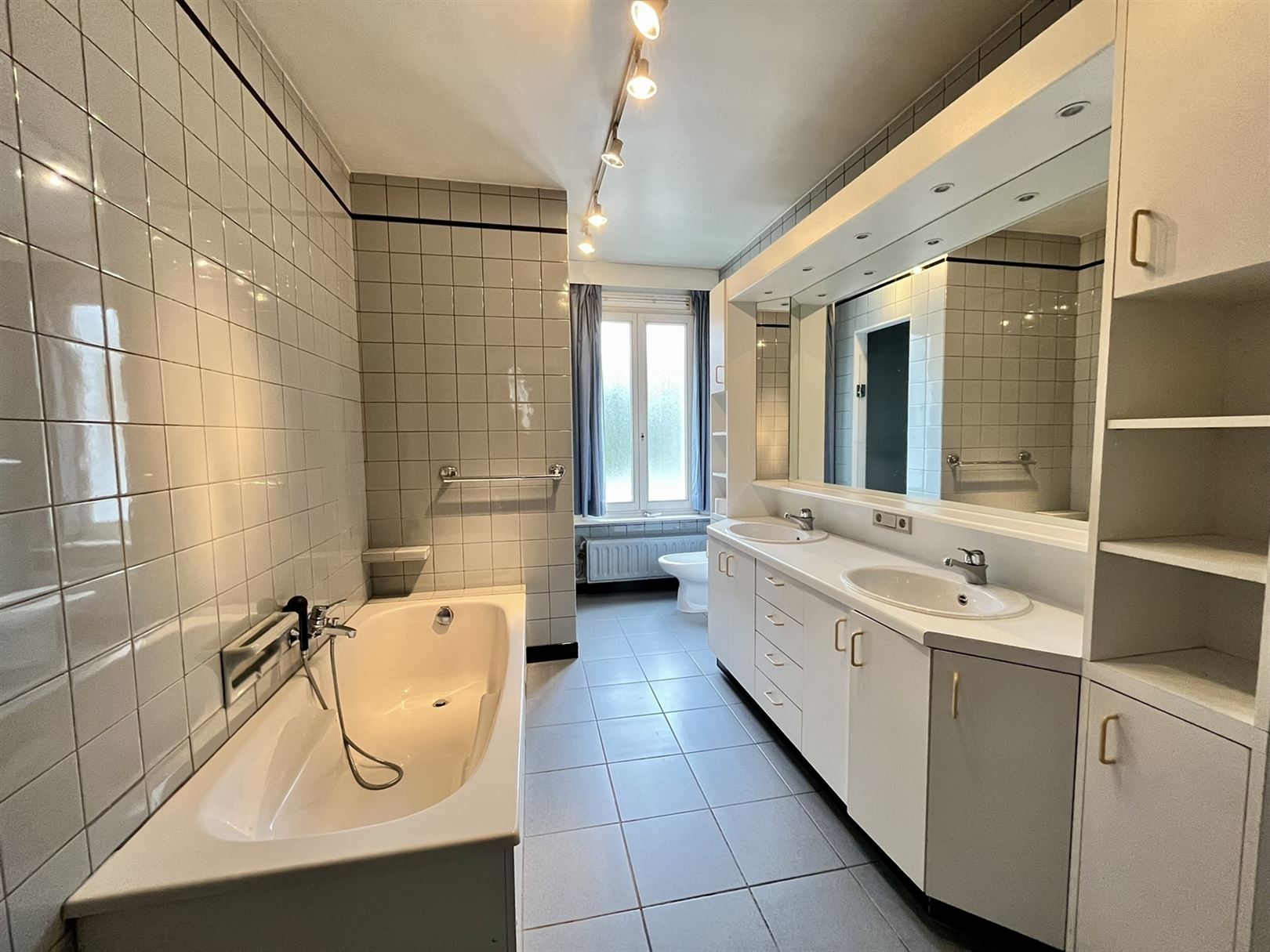 1e verdieping: overloop, een slaapkamer aan de voorzijde van 21 m² met een mooie plafondhoogte van +- 3,70 m, en een slaapkamer aan de achterzijde van +- 12,30 m².