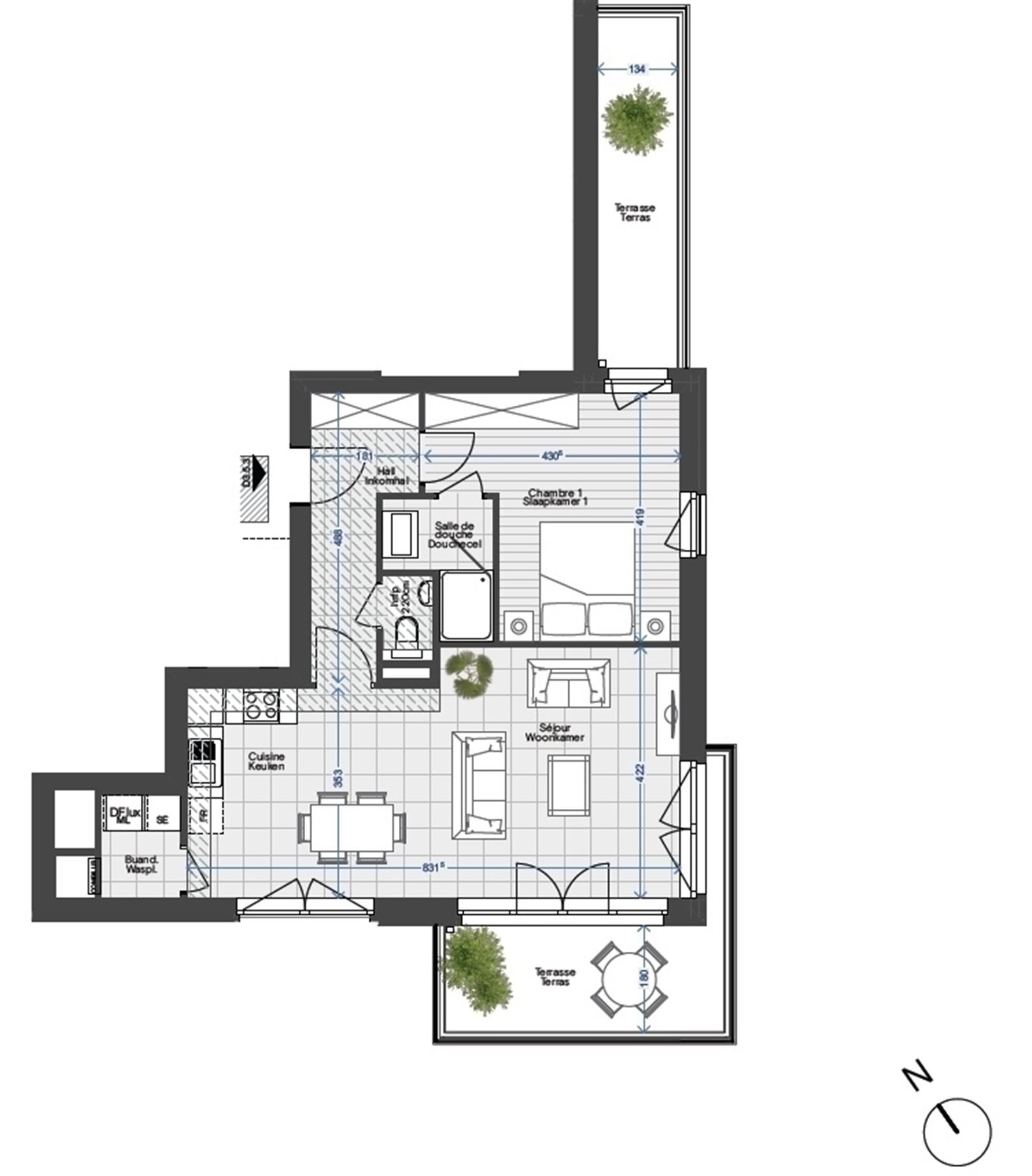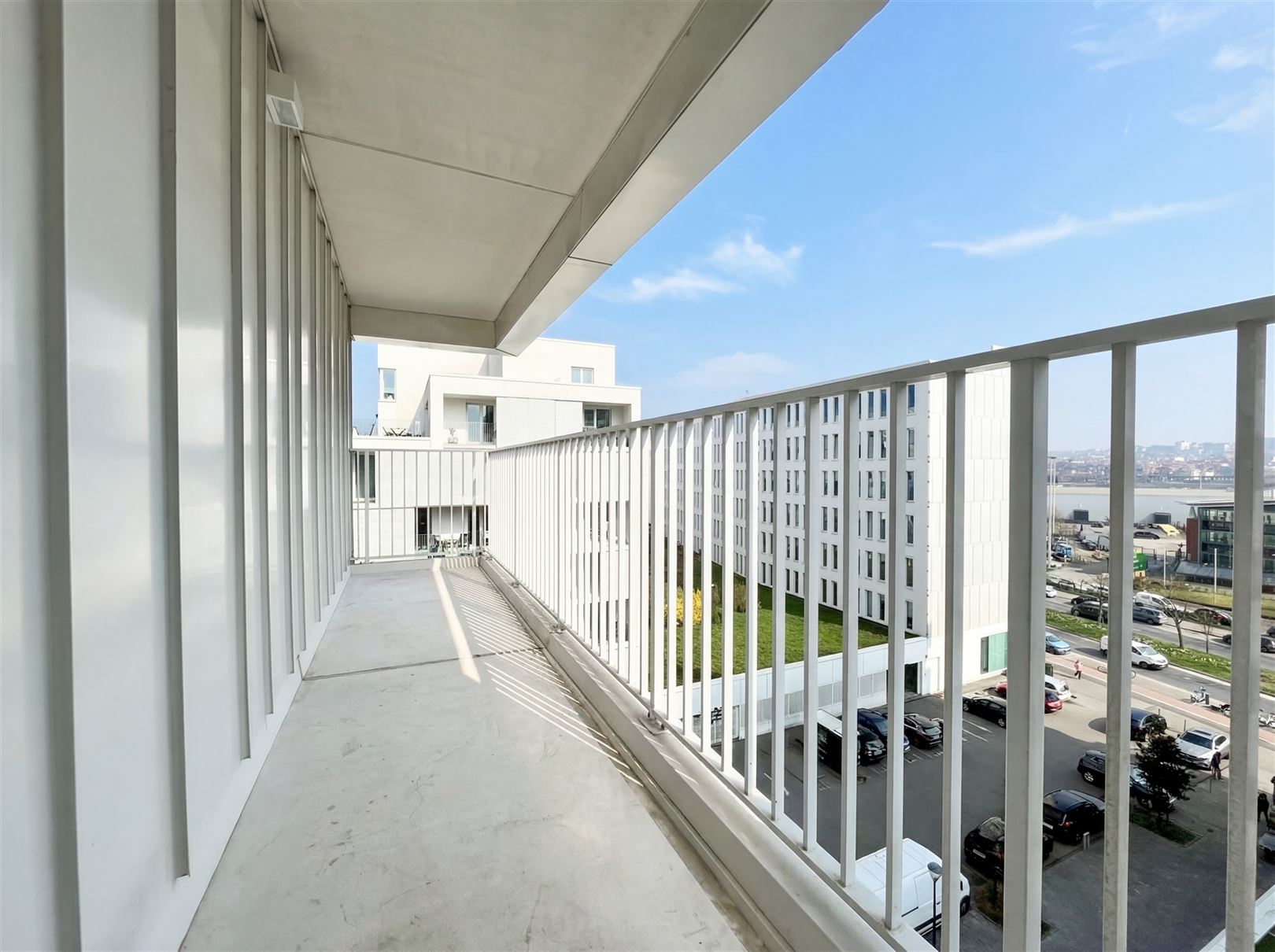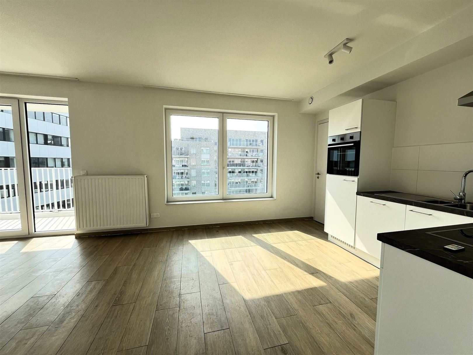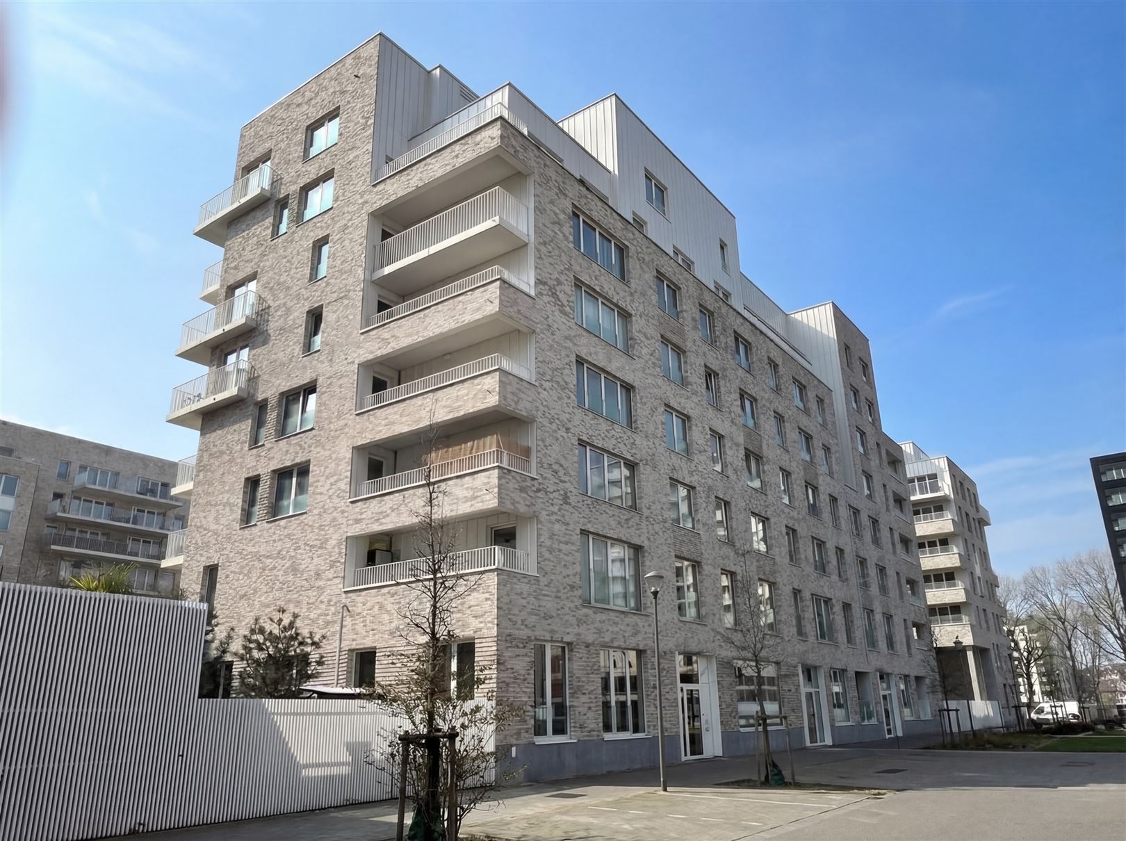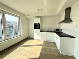 Nieuwmolenstraat, in het nieuwe complex City Dox, appartement met één slaapkamer op de 5e verdieping met een oppervlakte van +- 77,29 m² en twee terrassen met een totale oppervlakte van +- 21,08 m². Dit appartement bestaat uit een betegelde inkomhal, een aparte wc met wastafel, een betegelde woonkamer met ingerichte Amerikaanse keuken van +- 28,50 m² die toegang geeft tot een eerste terras, een was-/verwarmingsruimte van +- 2,30 m², een slaapkamer met parketvloer van +- 15 m² met een betegelde doucheruimte van +- 3,40 m² en toegang tot het tweede terras. Een kelder. Een verplichte parkeerplaats (€ 20.000) in de kelder van het gebouw. Videofonie. Energieklasse: EPC A-. Vrij bij akte. Verkoop onder registratierechten.